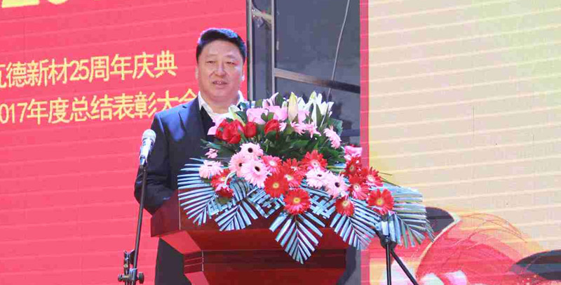 2月3日上午瓦德新材25周年慶典暨2017年度總結(jié)表彰大會于河北邯鄲五谷豐登大酒店隆重召開。此次會議的主題為“感恩 共享 發(fā)展”。集團董事長謝富強,總經(jīng)理常金秀,中高層領(lǐng)導(dǎo)干部,武漢工廠、邯鄲工廠、安徽工廠職工代表,社會各界友人等近300人歡聚一堂, 共同分享收獲的喜悅,迎接全新的挑戰(zhàn)。